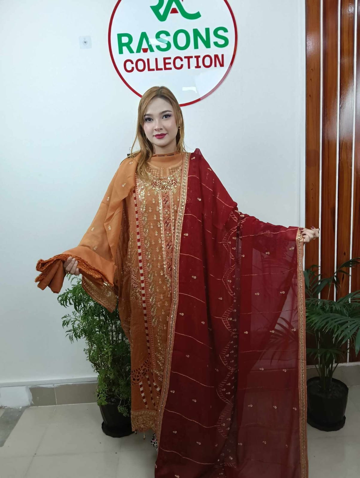 - Dupatta: The ensemble is complemented by a matching Luxury Chiffon Jorjet Dupatta, adding a touch of grace and versatility to your look.