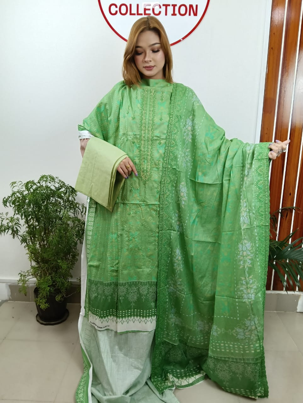 Crafted from premium-quality soft cotton, this unstitched set offers the perfect blend of comfort and elegance, making it an ideal choice for any occasion.